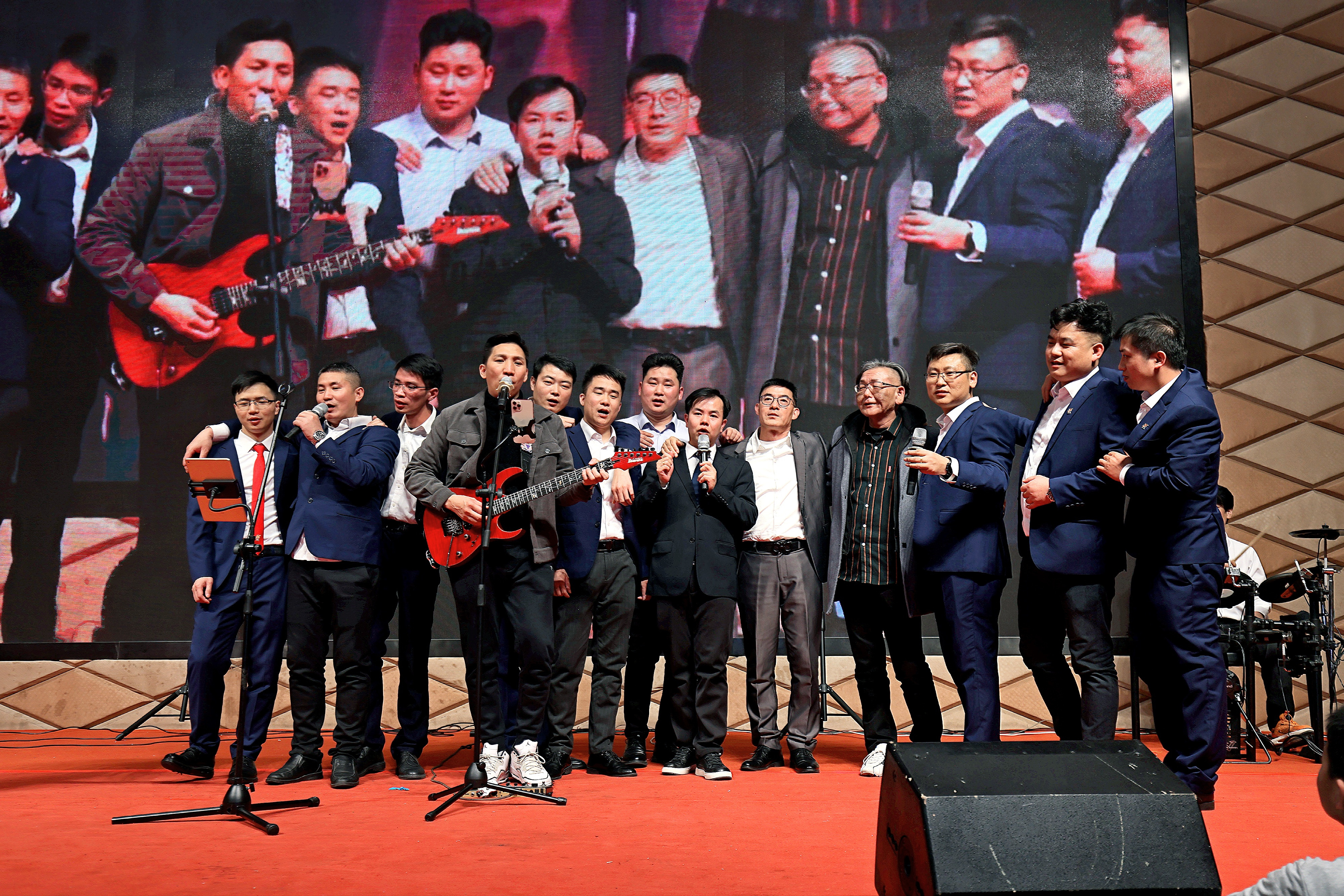 年會節(jié)目精彩紛呈,舞蹈、獨唱、魔術(shù)、現(xiàn)場作畫、模仿秀等節(jié)目接連上演、精彩不斷,形式多樣、內(nèi)涵豐富,令人賞心悅目。樂隊演奏引領(lǐng)的大合唱更將晚會推向高潮,全場晚會,熱鬧非凡,掌聲、歡笑聲不斷,洋溢著歡樂和喜慶的氣氛。