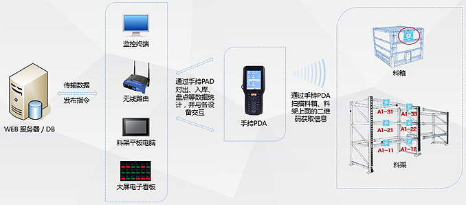項目主要組成:高層貨架、托盤(貨箱)、巷道堆垛機、輸送機系統(tǒng)、AGV系統(tǒng)、自動控制系統(tǒng)、庫存信息管理系統(tǒng)。